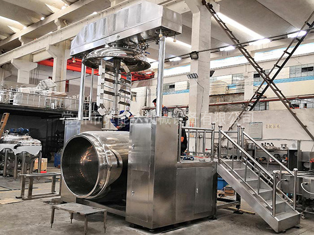 攪拌形式——主鍋為框式攪拌加均質(zhì)頭,油水鍋有錨式攪拌、分散盤(pán)以及漿葉式攪拌等。