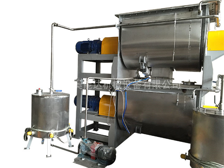 6、加液霧化裝置:可對(duì)不同粘稠度的液體物料進(jìn)行霧化,使加入液體物料混合均勻(噴灑狀)。